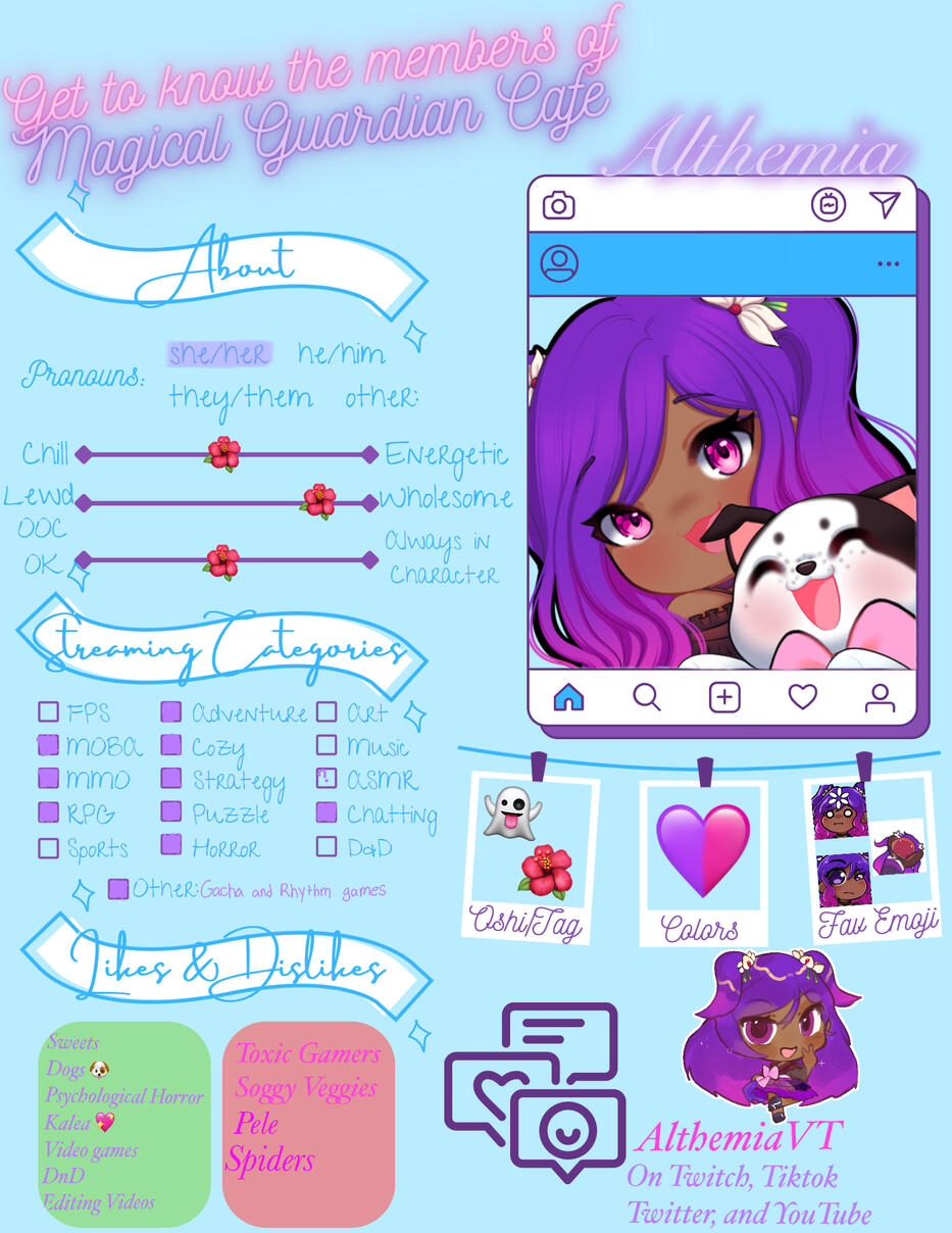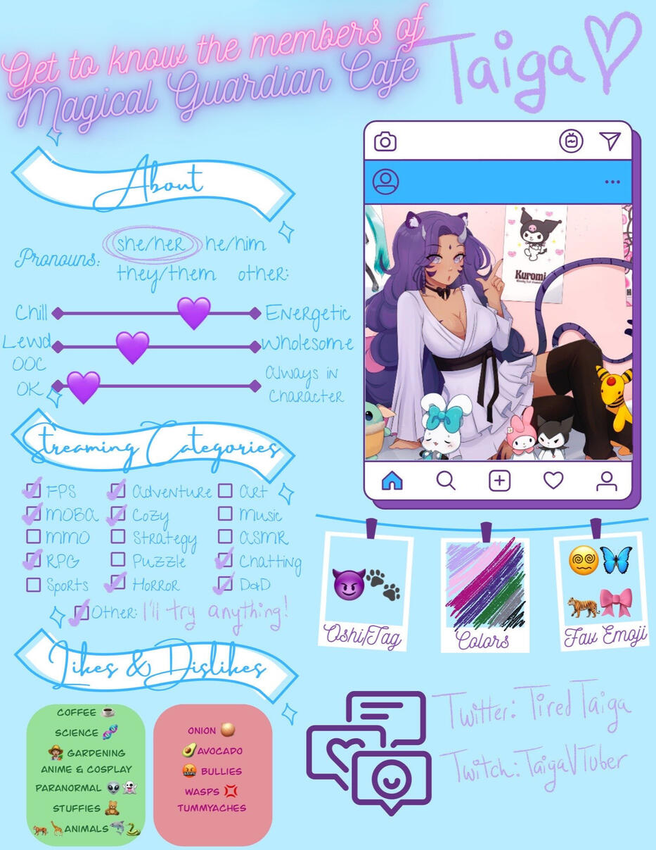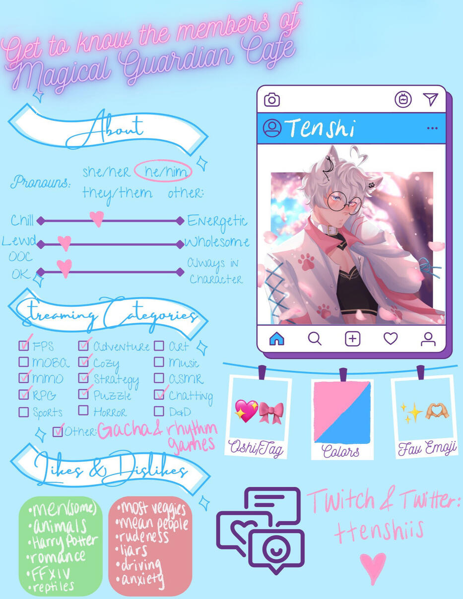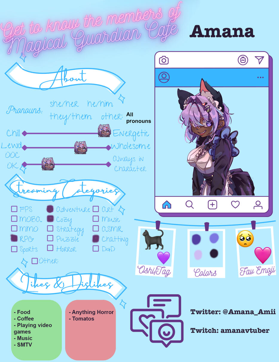 Magical Guardian Cafe is a diverse VTuber stream team focused on creating safe spaces in all of the members' communities. ✨By following the GLHF Pledge from the AnyKey organization, we're committed to fostering respectful, enjoyable, & harassment-free experiences for everyone regardless of sex, gender identity & expression, sexual orientation, race, ethnicity, disability, physical appearance, body size, age, or religion.